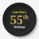 Plato De Papel Black, Faux Gold 55th Birthday + Custom Name
