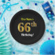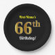 Plato De Papel Black, Faux Gold 66th Birthday + Custom Name
