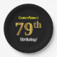 Plato De Papel Black, Faux Gold 79th Birthday + Custom Name