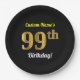 Plato De Papel Black, Faux Gold 99th Birthday + Custom Name