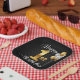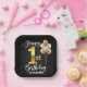 Serve up cake and cheer with this adorable and personalized paper plate, perfect for a 1st birthday celebration. The design features a faux gold number '1' and a festive cluster of metallic gold and white balloons set against a stylish chalkboard black background. These sturdy disposable plates are ideal for your little girl or boy's milestone party. Fully customizable with the child's name!