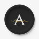 Plato De Papel Black Gold Girly Script Monograma Nombre moderno