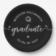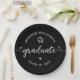 Plato De Papel Black Graduation White Modern Script Hearts Cap