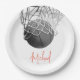 Plato De Papel Black & White Basketball Ball & Net Your Name