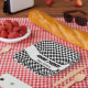 Plato De Papel Black White Check Pattern Racing Theme Birthday
