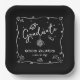 Be proud, rejoice and showcase this milestone of your favorite grad! Celebrate with this quirky, whimsical, simple, modern, custom paper plate. Fun white handwritten script typography and hand drawn graduation icon sketch doodles overlay a dramatic black background. Personalize the custom text with your graduate’s name and class year or special message. Available in 2 sizes: 7” square or 9” square. Matching invites, thank you cards, hand fans, banners, yard signs and other graduation goodies are also available in this trendy and playful collection. Guaranteed to add stylish fun to their special party!