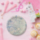 Plato De Papel Blanco Azul Rosa Moderno Abstracto Fluid Marbling