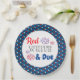 Blanco rojo y la invitación del embarazo en julio y la ducha de bebé