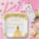 This Quinceanera plate features faux glitter gold floral flowers and a beautiful princess with blonde hair and an elegant dress. This is perfect for a Quinceanera birthday party.