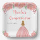 Plato De Papel Blonde Hair Princess Pink Floral Quinceanera