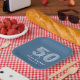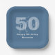 Platos De Papel De Celebración De 50 Años Con Feliz Azul Y Blanco. ¡personalizar con tus detalles!