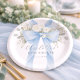 Plato De Papel Blue Bow Floral Baby Boy Shower
