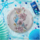 Plato De Papel Blue Budgie y Rosas Placa de papel de cumpleaños
