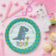 Add some extra style to your preschool boy’s celebration with these personalized paper plates! A fun, whimsical, playful visual of a cute, bold, kawaii, navy blue t-rex, and fun, handwritten typography over a light turquoise blue and white striped background, honors the preschool grad. An adorable palm tree pattern overlaying turquoise blue is on the rim, framing the illustration. Add love and joy to your party whenever you use this simple, modern, and whimsical, personalized paper plate. Personalize the custom text with your graduate’s name and special message. Your choice of 2 sizes: 7” or 9”, round or square shape, or 7” bowl. Matching invites, banners, welcome foam boards and other graduation goodies are also available in this special and fun collection. Guaranteed to add stylish fun to their special party!