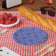 Plato De Papel blue geometric and floral pattern