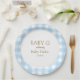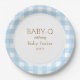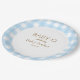 Blue gingham circular baby shower plate.