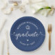 Be proud, rejoice and showcase this milestone of your favorite grad! Celebrate with these simple, modern, bold custom paper plates. Fun white handwritten calligraphy script with cute, playful hearts and a graduation cap icon overlay a navy blue background. Personalize the custom text with your graduate’s name and class year or special message. Available in 2 sizes: 7” or 9”, round or square. Matching invites, thank you cards, hand fans, banners, yard signs and other graduation goodies are also available in this trendy and playful collection. Guaranteed to add stylish fun to their special party!