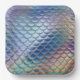 Plato De Papel Blue Green Mermaid Fish Scales Holographic Trendy
