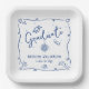 Be proud, rejoice and showcase this milestone of your favorite grad! Celebrate with this quirky, whimsical, simple, modern, custom paper plate. Fun navy blue handwritten script typography and hand drawn graduation icon sketch doodles overlay a clean white background. Personalize the custom text with your graduate’s name and class year or special message. Available in 2 sizes: 7” square or 9” square. Matching invites, thank you cards, hand fans, banners, yard signs and other graduation goodies are also available in this trendy and playful collection. Guaranteed to add stylish fun to their special party!