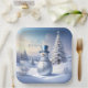 Beautiful Blue Hat Snowman Christmas Tree Holiday Paper Plate