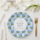 Este personalizado de placas de papel, un detalle encantador para cualquier ducha de bebé, presenta un patrón de flor de horangea azul bonito y texto fácil de personalizar para un detalle fiesta que tiene el encanto dulce de un asunto de cabaña de campo.