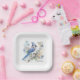 Platos de papel para fiestas de cumpleaños de mujeres personalizados con la pintura de un bello Jay azul sentado entre flores en las ramas de un árbol. Personalizado con el nombre de la invitada de honor y su fecha fiesta. Contáctame para obtener ayuda con tus personalizaciones o para solicitar productos adicionales de correspondencias o coordinación de Zazzle para tu celebración.