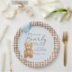 Celebrar con estilo con esto Apenas podemos esperar la placa Baby Shower de Teddy Bear Boy de Porch & Gable Design. Con un oso de peluche color agua dulce sosteniendo un globo azul, colocado sobre un fondo azul tierno sobre una manta de gingham marrón chocolate. Este plato es la combinación perfecta de lo lindo y lo clásico. Con el texto del personalizable para el nombre del bebé y la fecha de ducha, le da un toque personal a su día especial. Utilice estos hornillos personalizados para servir comida y postres, para unir su evento. Diseñados para coordinar con la colección Baby Shower We Can Barely Wait completa, se combinan maravillosamente con invitaciones, tazas, servilletas, pancartas y mucho más a juego, lo que hace que la ducha de bebé se sienta perfecta, festiva e inolvidable.