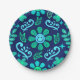 Plato De Papel Blue Retro Style Floral and Sun Symbol Pattern