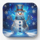Beautiful Blue Snowman Snowflakes Holiday Paper Plate