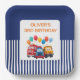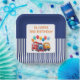 This fun blue-striped truck birthday theme design features colorful cartoon trucks, cheerful balloons, and bold typography perfect for kids’ birthday celebrations. Ideal for coordinating party invitations, banners, posters, thank-you cards, gift tags, favor tags, and other birthday craft & supplies. The bright blue and orange color palette brings a joyful and playful touch to any celebration theme.