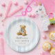 Plato De Papel Blue Stripes Bear Baby Shower