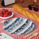 Plato De Papel Blue White Denim Hearts Stripes Cumpleaños