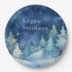 Plato De Papel Blue & White Watercolor Winter Scenery Holiday