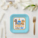 Blue Wild One Boy First Birthday Paper Plates - Blue, Naranja, Brown, Forest Animals Clipart de Pixel Paper Impresiones