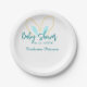 Plato De Papel Blue yellow baby shower name date animal ear cute
