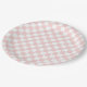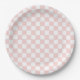 Charming blush pink and white checkerboard paper plates designed for elegant bridal showers, weddings, and romantic gatherings. The gentle pastel tones create a dreamy and graceful table accent for any event.