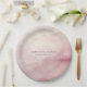 A chic blush pink watercolor wash wedding paper plate featuring elegant pastel gradient designs and clean calligraphy script for spring and summer weddings.