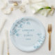Este plato de papel diseñado por el boda se muestra con una hermosa impresión de hojas azules polvorientas. También ofrecemos servilletas de papel a juego. Personalizar este elemento y cambia el texto de ejemplo al suyo con esta plantilla. Imagen con licencia