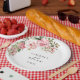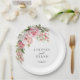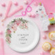 El plato de papel boda se muestra con una bonita impresión floral rosa rosada. Personalizar este elemento y cambia el texto de ejemplo al tuyo. Busca nuestras servilletas. Imprimir con licencia