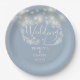 Estos elegantes platos de papel con luces de cuerda de bonito y un floral dibujado a mano se pueden personalizar con su información en letras blancas de moda sobre un polvoriento fondo azul. Diseñado por Thisisnotme©