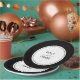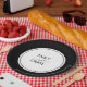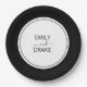 Estos elegantes y modernos platos de papel de boda o de ducha de matrimonio presentan un diseño de texto sencillo en blanco y negro en un estilo minimalista. Añade el nombre de la novia y del novio para que sean completamente suyos. Elija el tamaño y el estilo en el menú de opciones.