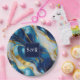 Plato De Papel Boda con mármol falso dorado, azul y blanco con mo