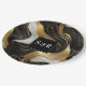 Plato De Papel Boda con Monograma y Mármol Falso Dorado, Negro y