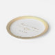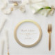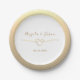 Celebra con elegancia atemporal con este plato de papel para bodas blanco y dorado, que incluye tus nombres, fecha de la boda y un corazón de cuerda dorada romántico. El diseño minimalista con un borde dorado de gradiente suave es perfecto para celebraciones modernas, formales o íntimas. Ideal para recepciones de boda, almuerzos de novia, cenas de ensayo y fiestas de compromiso.