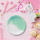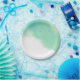Guay y la calma de los tonos de las acuarelas azules del océano se transmiten a través de este sencillo diseño abstracto de placas de papel. Añada su propio texto personal a este diseño al personalizar para su evento o fiesta especial.