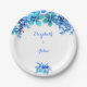 Plato De Papel Boda de acuarela floral azul y Aqua