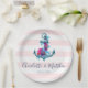 Plato De Papel Boda de anclaje acuático de franjas rosadas náutic