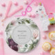 Los rosas de flores de color rosa y ciruela románticos y la vegetación exuberante hacen que este diseño de placa de papel resulte pop con estilo y encanto. Esta combinación de colores tiene un bonito contraste y es una elección popular durante todo el año. Personalice la plantilla de texto con el nombre de la novia y del novio o del invitado de honor. Hay otros productos coincidentes disponibles para coordinar con este elemento.