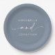Plato De Papel Boda de escritura moderno azul polvoriento mínimo