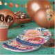 Platos de boda con un diseño elegante con flores de peonía en acuarela en tonos rosa y melocotón.